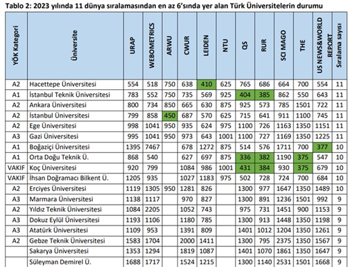 ODTÜ University Ranking by Academic Performance (URAP) Laboratuvarı “2023 Yılında Üniversitelerimizin 11 Dünya Genel Sıralamasındaki Durumu” başlıklı raporunu yayınladı.