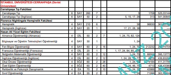 İstanbul Üniversitesi taban puanları ve başarı sıralamaları 2 yıllık