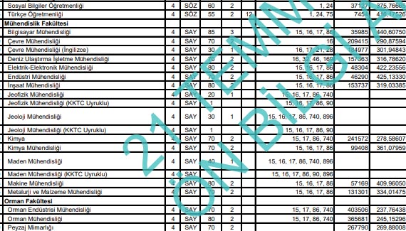 2020 ÖSYM tercih kılavuzu taban puanları kontenjanları için tıklayınız