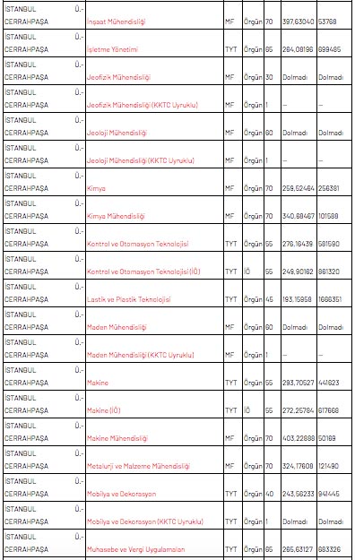 İstanbul Üniversitesi Cerrahpaşa YÖK atlas tercih robotu için tıklayınız