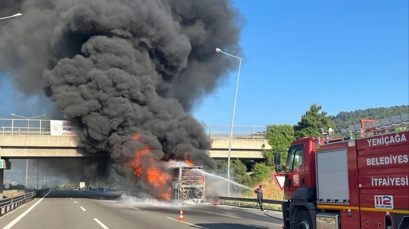 İstanbul istikametinde seyir halindeyken Anadolu Otoyolu'nun Bolu kesiminde feci bir olay yaşandı. İçinde 39 yolcunun bulunduğu bir yolcu otobüsü aniden alev aldı. Yangın kısa sürede tüm aracı sardı, otobüs adeta alev topuna döndü.