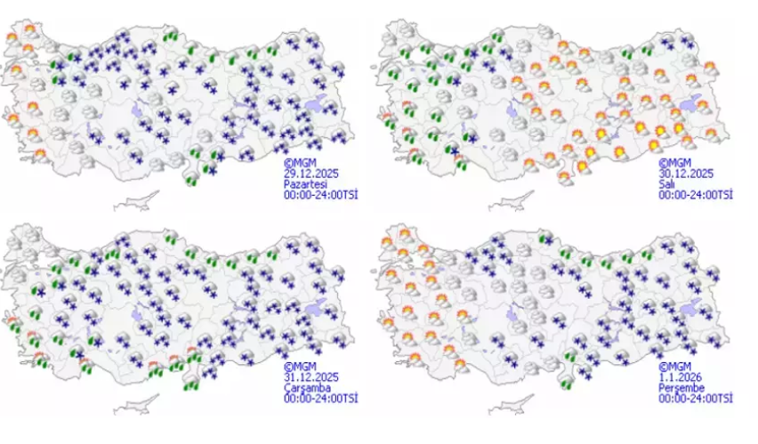 Meteoroloji Genel Müdürlüğü tarafından yapılan tahminlere göre: Ülkemiz genelinin parçalı ve çok bulutlu, Marmara ve Doğu Akdeniz'in doğusu, İç Anadolu'nun kuzey ve doğusu ile Karadeniz, Doğu ve Güneydoğu Anadolu Bölgelerinin yağışlı geçeceği tahmin ediliyor. Orta Karadeniz kıyıları ile İskenderun Körfezi çevrelerinde yağmur, diğer yerlerde karla karışık yağmur ve kar şeklinde görülecek yağışların, Batı Karadeniz, Güneydoğu Anadolu'nun doğu, Doğu Anadolu'nun güneydoğu kesimleri ile Sakarya çevrelerinde kuvvetli olması bekleniyor. Kuzey, iç ve doğu kesimlerde buzlanma ve don ile birlikte pus, yer yer sis görüleceği tahmin ediliyor.