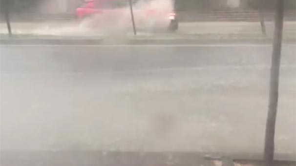 İstanbul'da beklenen sağanak yağış sonunda başladı. Büyükçekmece bölgesinde etkili olan sağanak yağış yollarda su birikintisi oluşmasına neden oldu.
