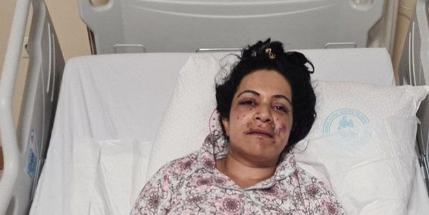 Ağzı parçalanarak yaralanan kadın hastaneye kaldırılırken, saldırgan ise polis tarafından yakalandı