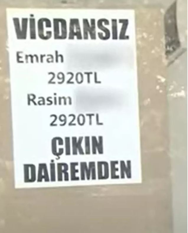 Maltepe'de bir apartmanda iki dairesi bulunan ev sahibi, kiracılarını evden çıkartmak istiyordu. Kiracıları evden çıkaramayan ev sahibi öyle bir yönteme başvurdu ki gerçekten bu kadarı 'pes' dedirtti. Ev sahibi apartmanın kapısına bir ilan astı. Asılan kağıtta kiracıların isim ve soyisimleriyle birlikte ödedikleri kira tutarını yazdı. Bununla da yetinmeyen ev sahibi, 'dairemden çıkın' dediği kiracıları vicdansızlıkla suçladı. Asılan ilan ev sahibi ve kiracı kavgalarının geldiği son nokta oldu.