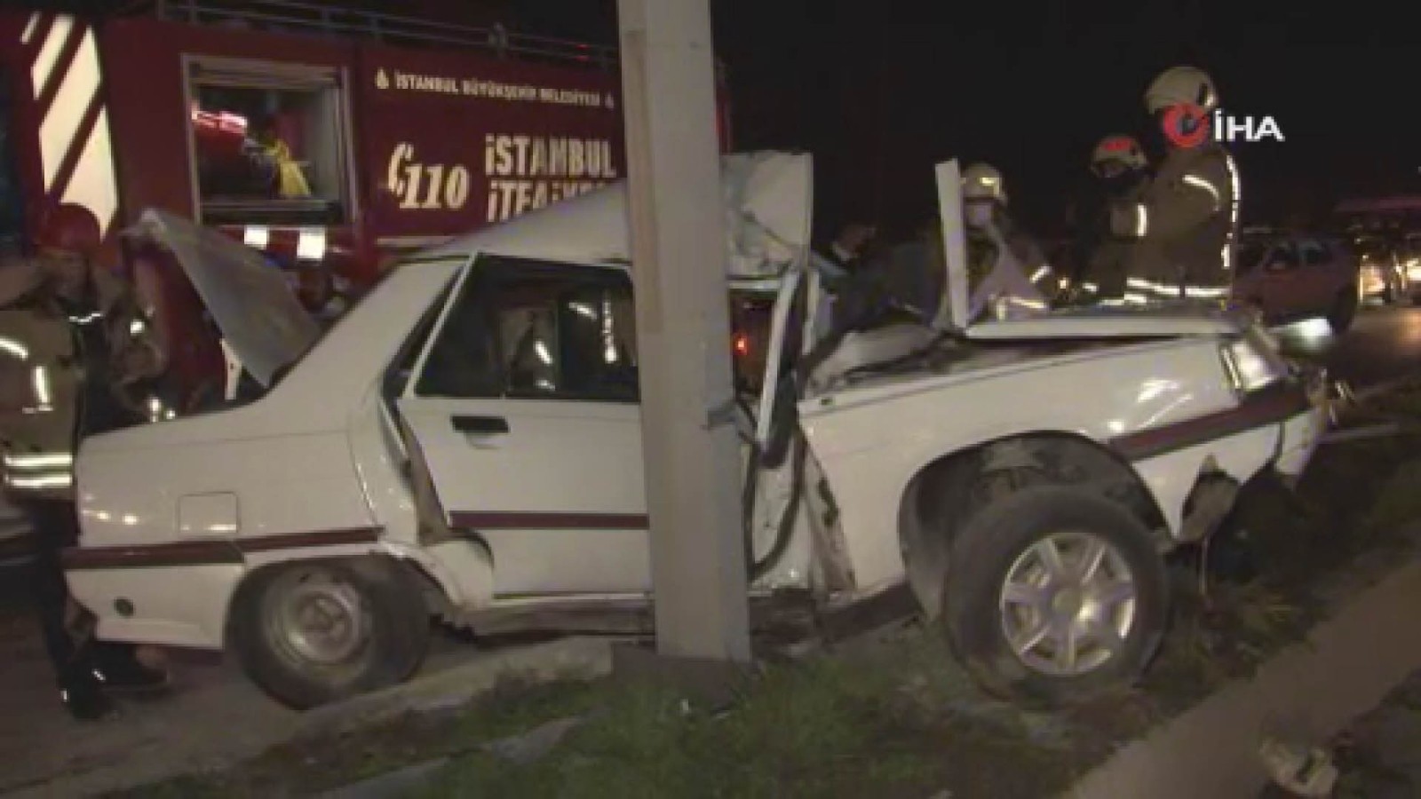 İstanbul Mahmutbey yolunda direksiyon hakimiyetini kaybederek aydınlatma direğine çarpan araç kağıt gibi ezildi. Araçta sıkışan sürücü ekiplerin zorlu mücadelesi sonucu sıkıştığı yerden kurtarıldı.