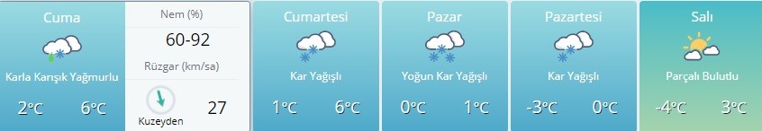 Son bir haftadır İstanbul yağışlı havanın etkisi altında. 14 Ocak’ta kentin yüksek kesimlerinde kar yağışı gözlendi. 15 Ocak’ın ilk saatlerinde bazı ilçelerde deyim yerindeyse lapa lapa kar yağdı. Vatandaşlar yağışın kaç gün süreceğini merak ediyor. Meteoroloji Genel Müdürlüğü 1. Bölge Müdürlüğü'nden alınan hava tahmin rapora göre; 15 Ocak’ın ilk saatlerinde İstanbul genelinde karla karışık yağmur olarak başlayacak yağışların kar yağışına dönüşerek öğle saatlerine kadar sürmesi bekleniyor. Cumartesi günü öğle saatlerinden itibaren karla karışık yağmur ve akşam saatlerinden itibaren kar yağışlı geçeceği tahmin edilen havanın, pazar günü yoğun kar yağışlı olacağı ve pazartesi günü akşam saatlerine kadar aralıklı olarak kar yağışlı geçeceği tahmin ediliyor.