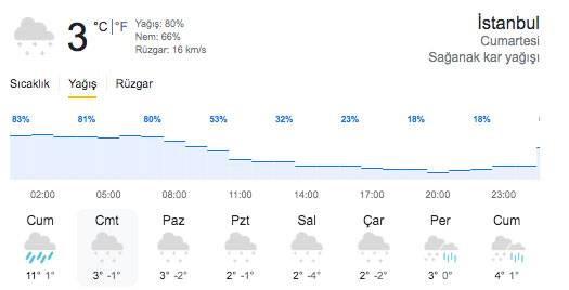İstanbul'da sağanak şeklinde başlayacak yağışın akşam saatlerinden sonra kent genelinde karla karışık yağmur ve kar yağışına dönmesi bekleniyor. İstanbul'da kar yağışı cumartesi, pazar ve pazartesi günü etkili olacak.