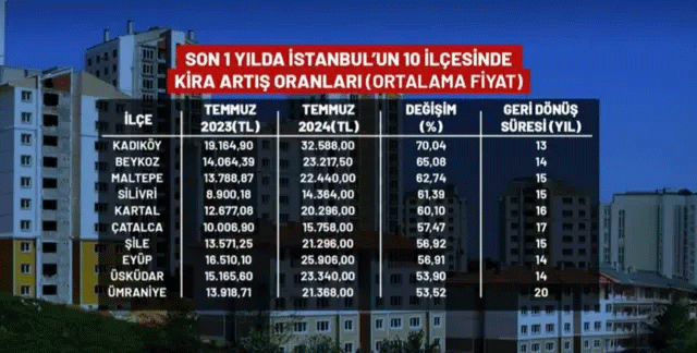 Hayat pahalılığının en fazla hissedildiği İstanbul'da ise kira fiyatlarındaki yükseliş vatandaşın barınma ihtiyacını oldukça zora sokuyor. Yapılan bir çalışma ile İstanbul'un 10 ilçesindeki artan kira fiyatları yapılan bir tablo ile gözler önüne serilirken yetkililerin kira fiyatlarına el atması bekleniyor.