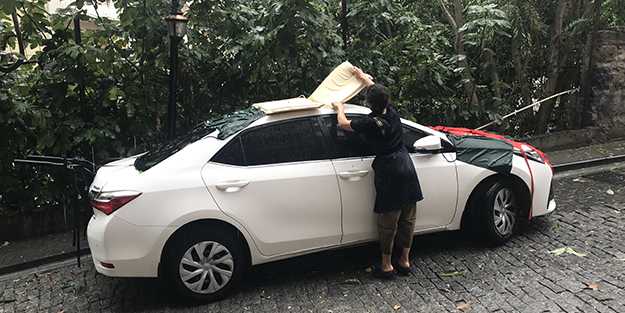 Öte yandan geçtiğimiz yıllarda İstanbul'da meydana gelen ve birçok maddi zarara neden olan dolu yağışından ağzı yanan İstanbullular arabalarını korumak için battaniyelere sarıldı.