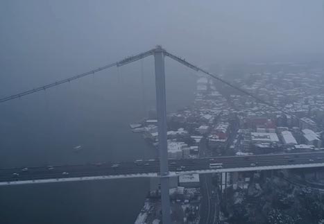 Dün başlayan kar yağışı İstanbul'un bir çok noktasında etkili oldu. Gece boyunca devam eden kar yağışı İstanbul'u beyaza bürüdü. Karlar altında kalan İstanbul'un kartpostallık manzarası havadan görüntülendi. 15 Temmuz Şehitler Köprüsü'nün eşlik ettiği muhteşem manzara seyrine doyum olmayan görüntüler oluşturdu. Beyaz bir sabah uyanan İstanbullular ise karlı havanın tadını çıkardı.