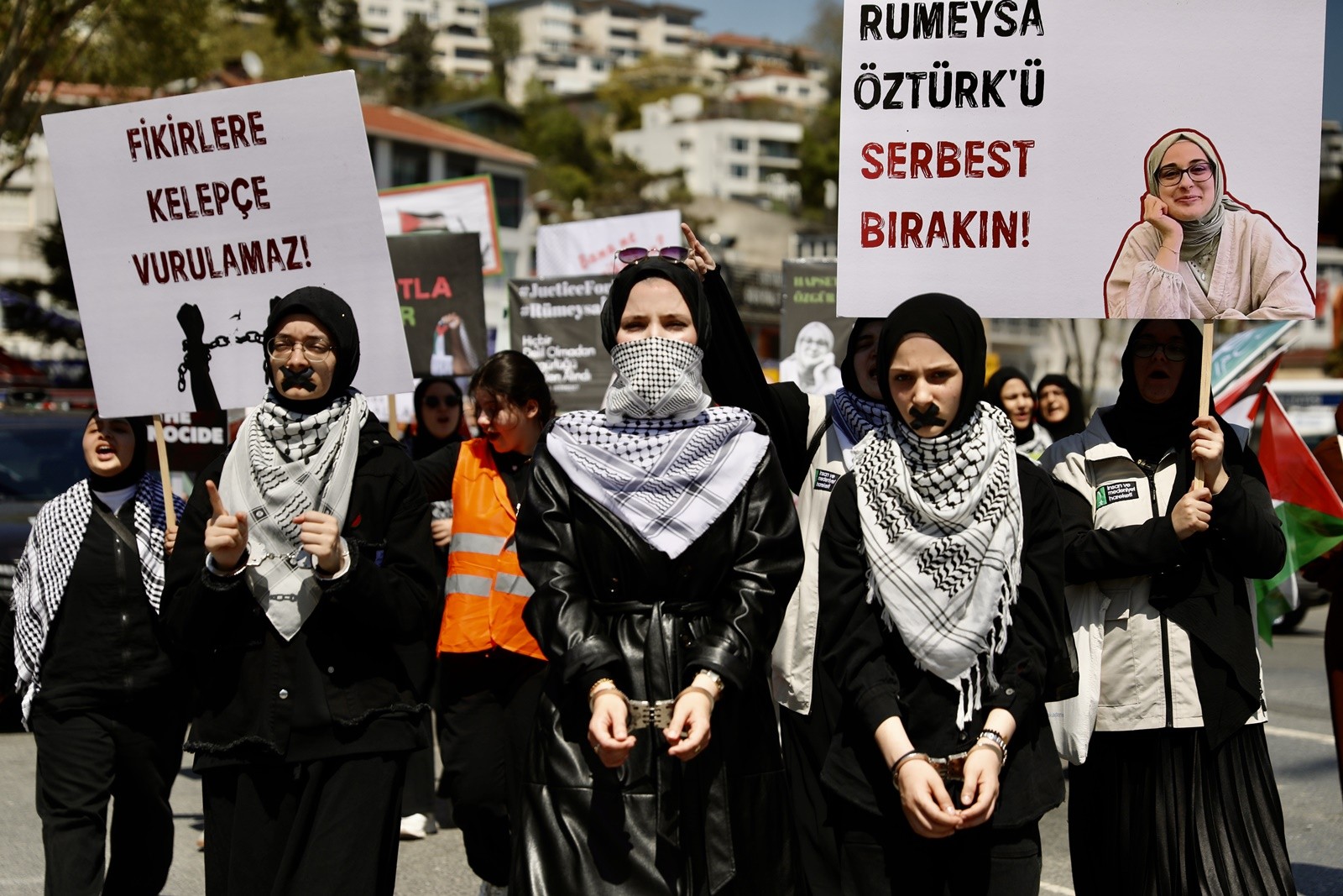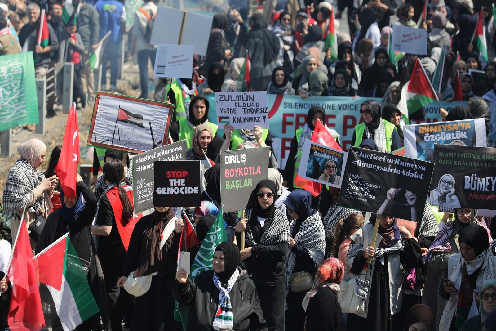 Kaya’nın ardından çeşitli sivil toplum kuruluşu temsilcileri tarafından konuşmalar yapıldı. Konuşmalarda, işgalci İsrail’in yaptığı katliamlar ve saldırılar telin edilirken, Filistin’e destek mesajları verildi. Katılımcılar, ABD'nin İsrail'e verdiği desteği sonlandırmasını istedi. Eylemde, Filisten’e destek verdiği gerekçesiyle ABD’de tutuklanan Rumeysa Öztürk’e de özgürlük talep edildi.