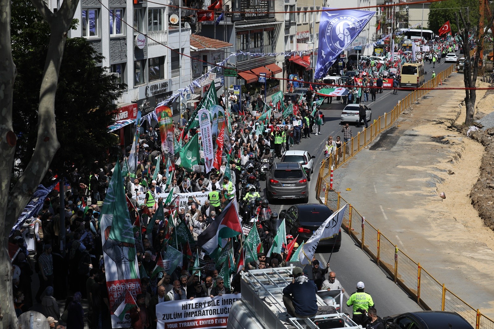İHH İnsani Yardım Vakfı’nın da aralarında bulunduğu çok sayıda sivil toplum kuruluşu tarafından işgalci İsrail’in Gazze’deki soykırımına tepki göstermek amacıyla İstanbul’da yürüyüş düzenlendi. On binlerce kişinin katıldığı yürüyüş, öğlen namazının ardından İstinye Mahmut Çavuş Camii önünden başlayıp ABD’nin İstanbul Başkonsoloğu’nda sona erdi.