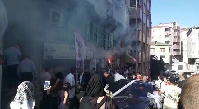 Çevredeki diğer vatandaşlar da düğün eğlencesini izlemek için geldi. Oluşan kalabalıkta çoğu kişi ne sosyal mesafeye uydu ne de maske taktı. O anlar bir vatandaşın cep telefonu kamerasına yansıdı.