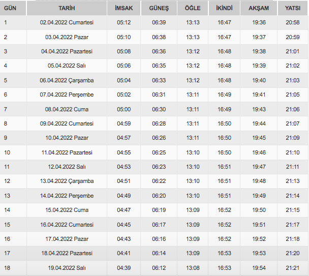 İstanbul'da 16 Nisan Cumartesi günü teravih namazı 21.17’de kılınacak.