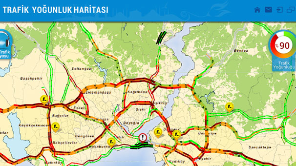 İstanbul'da trafik durma noktasına geldi. İBB'nin verdiği bilgiye göre trafik yoğunluğu şu saatlerde yüzde 90 oranında seyrediyor.