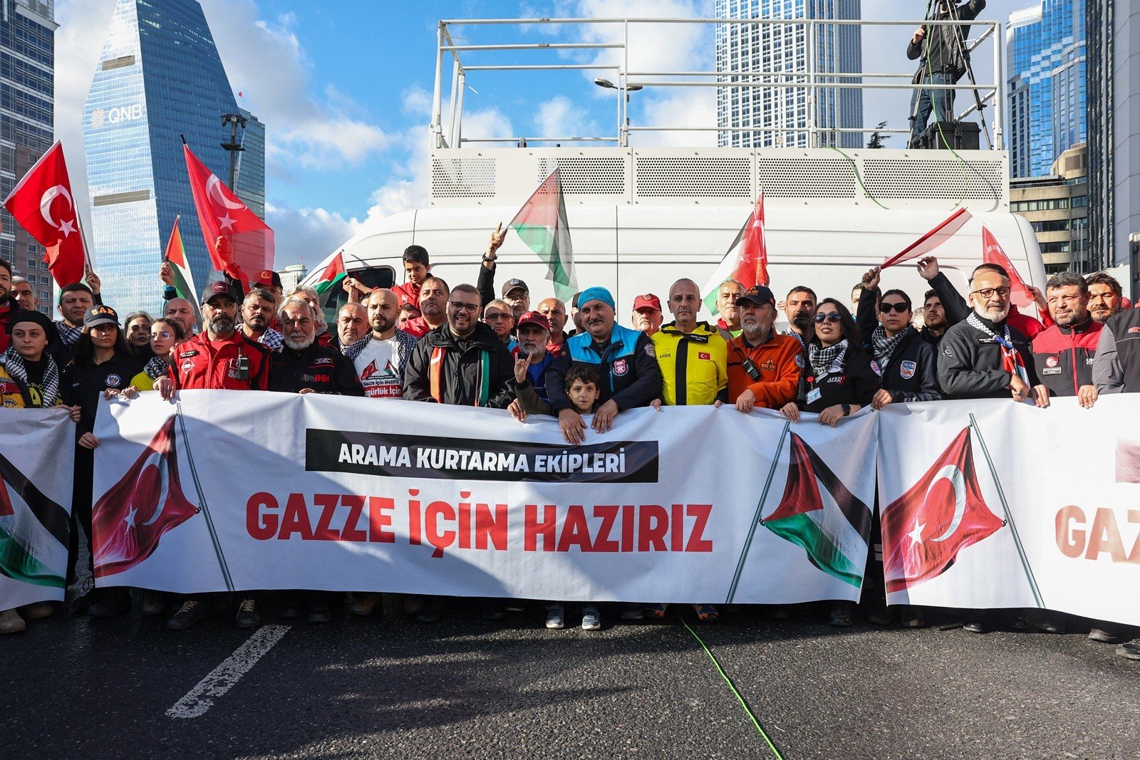 İHH İnsani Yardım Vakfı ve AFAD arama kurtarma ekiplerinin de aralarında bulunduğu çok sayıda arama kurtarma ekibi tarafından Gazze’nin özgürlüğü için motosiklet ve araç konvoyu düzenlendi. Yüzlerce aracın katıldığı ve Yenikapı Etkinlik Alanı’ndan başlayan konvoy, işgalci İsrail’in Levent’te bulunan başkonsolosluğu önünde sona erdi. Ekipler tarafından burada basın açıklaması düzenlendi.