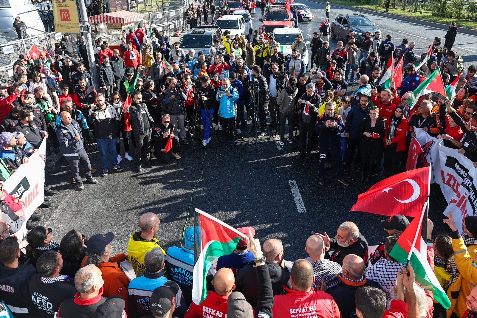Konvoya yüzlerce araç ve binlerce kişi katıldı. Yenikapı Etkinlik Alanı’ndan başlayan konvoy, işgalci İsrail’in Levent’teki başkonsolosluğu önünde son buldu. Konvoya katılan ekipler adına burada bir basın açıklaması düzenlendi. Ekipler adına basın açıklamasını Beykoz Üniversitesi Doğal Afetlerde Arama Kurtarma Ekip Üyesi Kadir Şeker okudu. “Bugün burada bulunmamızın amacı, Gazze halkının onurlu direnişine desteğimizi hep birlikte haykırmaktır” denilen açıklamada, “Gazze’de sağlanan ateşkesin ardından, bölgenin yeniden ayağa kalkması, insanlığın vicdanı adına hepimizin ortak sorumluluğudur” denildi.