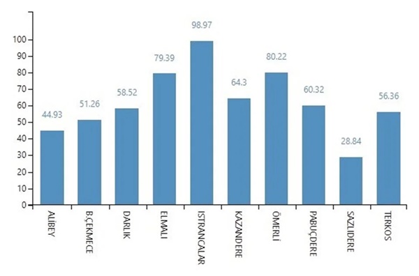 İstanbul’daki barajlarda en yüksek baraj doluluk oranı yüzde 100’e yakın oranla 'Istrancalar' olurken, en düşük doluluk oranı yüzde 28 oranla 'Sazlıdere' oldu.