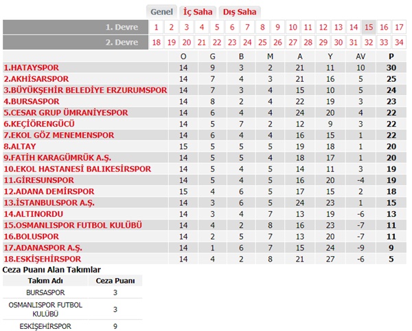 TFF 1. Lig 15. hafta maç sonuçları ve fikstür