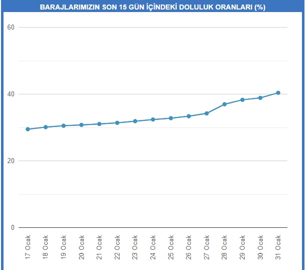 Kente su sağlayan barajlardaki doluluk oranı 31 Ocak 2021 itibarıyla yüzde 40,39 olarak ölçüldü. Son dört günkü yağışların barajlara yüzde 6,08'lik bir katkısı oldu.