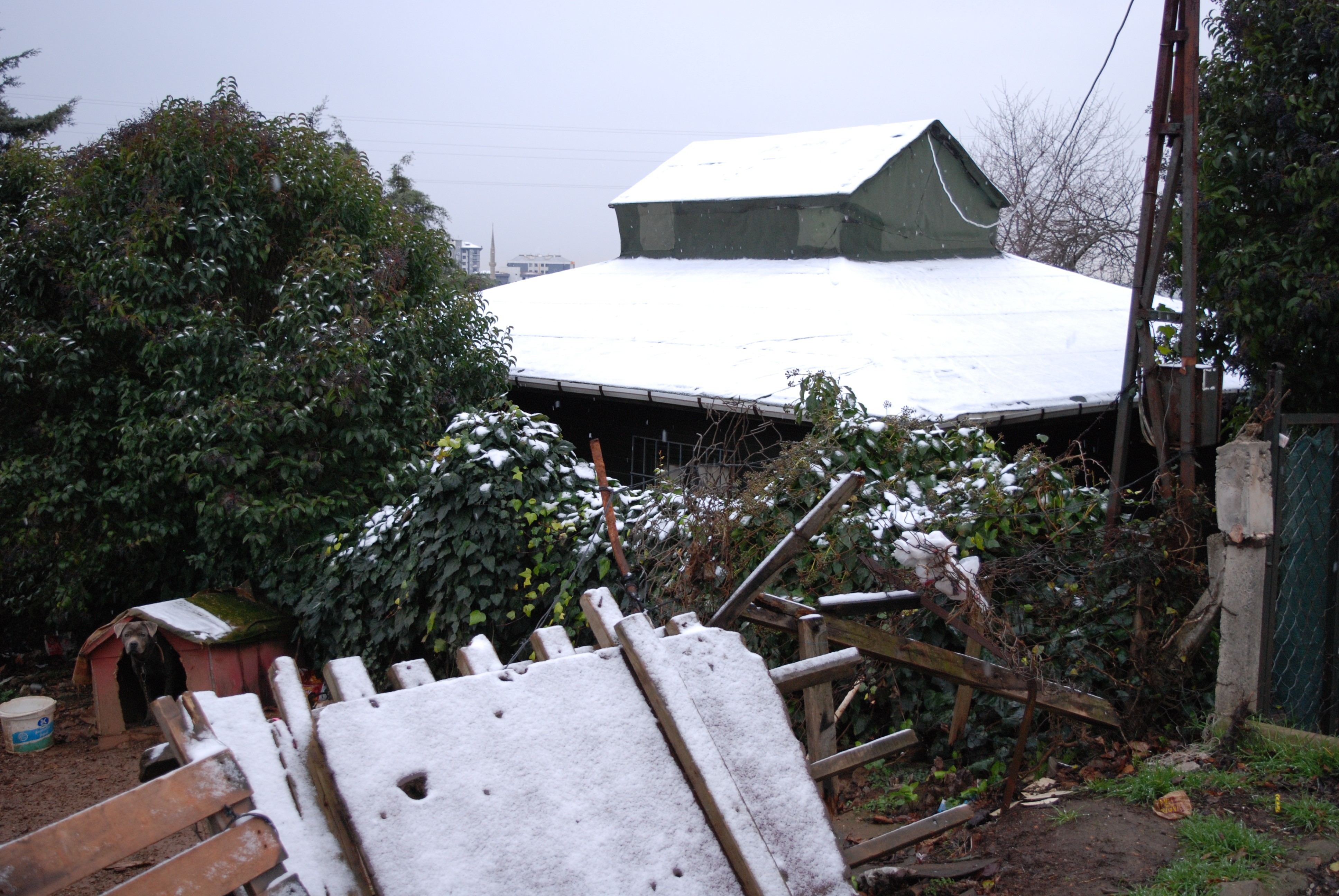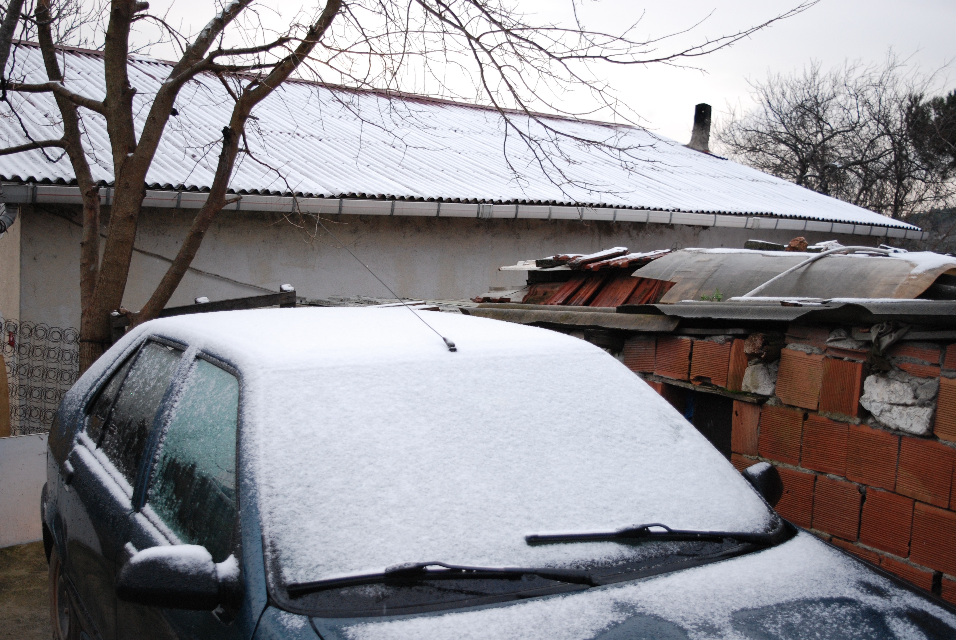 Yağışla çevredeki evlerin çatıları ve arabaların üstü karla kaplandı.