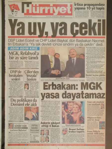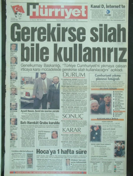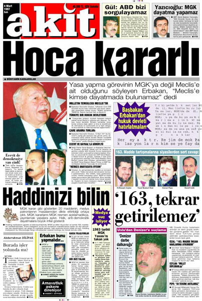 28 Şubat sürecinde kartel medyası, ordunun İslam karşıtı faaliyetlerine destek verdi, Erbakan'ın istifası için akılalmaz manşetlerle saldırdı.