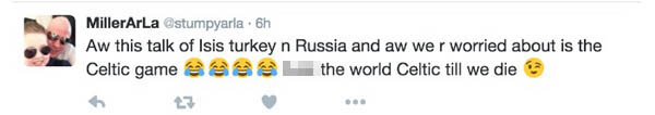 MillerArla: Işid ve Türkiye-Rusya hakkında konuşuyorlar. Bizim tek ilgilendiren Celtic maçı. Ölene kadar Celtic.