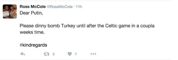 Ross McCole: 'Sevgili Putin, lütfen Celtic maçına kadar Türkiye'yi bombalama
