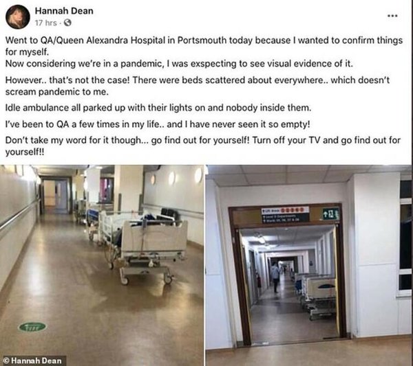 Hürriyet'in haberine göre; Hannah Dean isimli bir serbest gazeteci ise rastgele girdiği birçok hastanenin boş koridorlarını paylaşarak hükümeti yalancılıkla suçlamıştı.