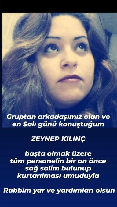Gemide bulunan 6 mürettebatın da Türk olduğu açıklanırken öte yandan gemide bulunan tek kadın mürettebatın ise Zeynep Kılınç olduğu ortaya çıktı.