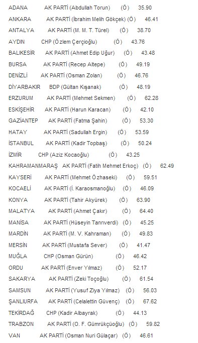 İŞTE BÜYÜKŞEHİRLERİN SON ORANLARI