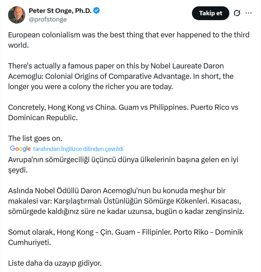 Acemoğlu’nun, ortak imzalı akademik çalışmasında Avrupa’nın sömürgeciliğini adeta “avantaj” gibi göstermesi, özellikle üçüncü dünya ülkelerini hedef alan bu yaklaşımı büyük tepki topladı.