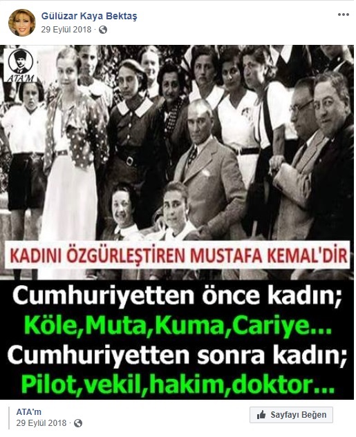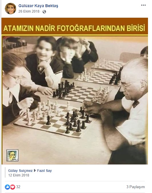 Gerçi o, 26 Ekim 2018’de “Atamızın nadir fotoğraflarından birisi” diyerek gayet kalitesiz bir photoshop resim paylaşmaktan da ayılıp hicap duymamışa benzemektedir.