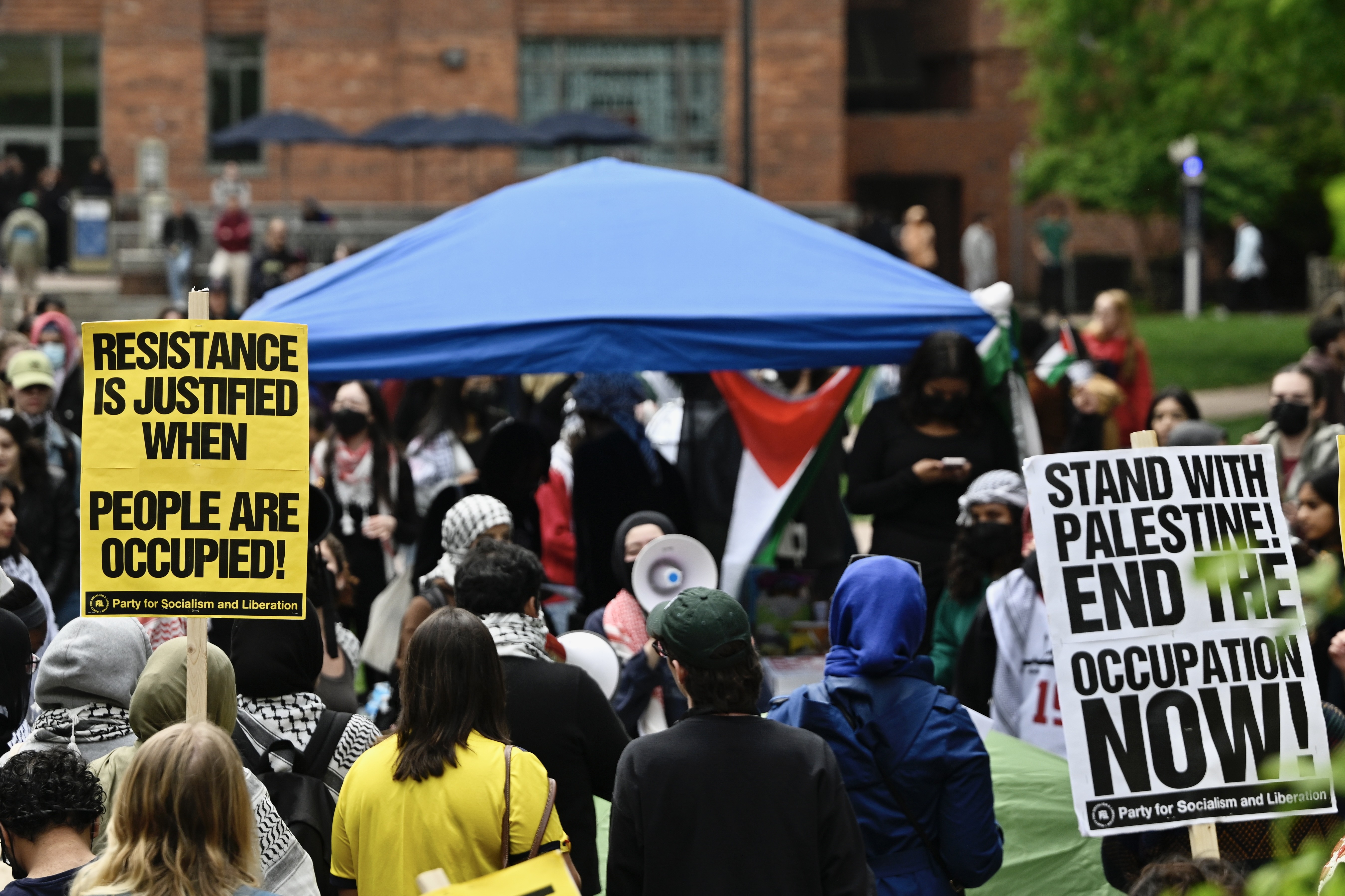 ABD'de ülke genelindeki üniversite kampüslerine yayılan "İsrail'in Gazze'ye saldırılarına tepki" eylemlerine başkent Washington'da bulunan Georgetown ve George Washington üniversitelerinde okuyan öğrenciler de katıldı. ABD'nin önde gelen üniversitelerinden Georgetown ile George Washington üniversitelerinde bazı öğrenciler, sabah saatlerinde kampüslerinin bahçesinde toplanmaya başladı.Georgetown Üniversitesinin ana kampüsünün ortasında yer alan büyük bahçede bir araya gelen yüzlerce öğrenci, "Özgür Filistin" ve "Gazze'de hemen ateşkes" sloganları attı. Bazı öğrenciler ise polisin sınırlı izin verdiği alanlarda çadırlar kurdu.