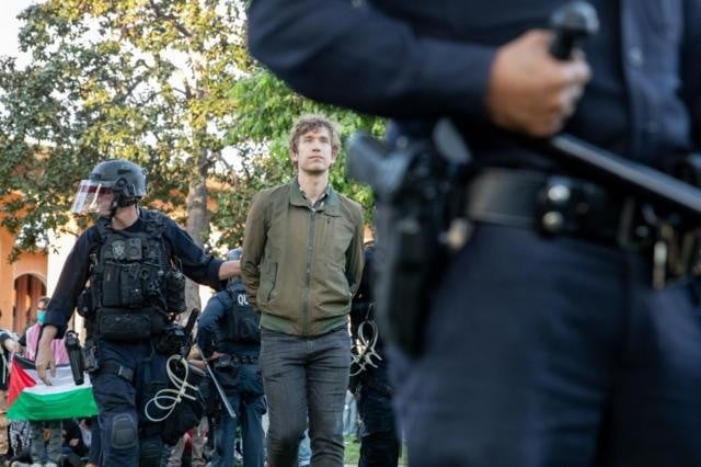 ABD'nin önde gelen üniversitelerinden Güney California Üniversitesinde polis, öğrencilerin kampüsün belli bölgelerine çadır kurmasına izin vermedi.Göstericilerin dağılması için uyarılarda bulunan polis, gün içinde halen gösterilerine devam eden bir grup öğrenciyi gözaltına aldı. Polis daha sonra üniversitenin ana kampüsünü halkın kullanımına kapattı.Öğrencilere dağılmaları için 10 dakika süre tanıyan Los Angeles polisi, gösteriye devam eden 93 öğrenciyi "izinsiz gösteri düzenleme" suçuyla gözaltına aldı.