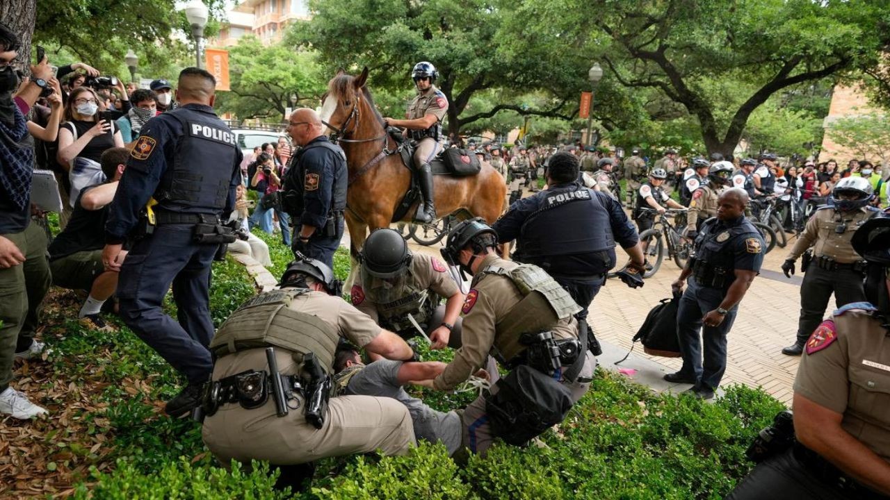Polisin "dağılın" uyarılarına rağmen üniversite bahçesine oturarak eylemlerine devam eden öğrenciler, güvenlik güçleri tarafından çembere alındı. Texas Valisi Greg Abbott ise sosyal medya platformu X'ten yaptığı paylaşımda, kalabalık dağılana kadar protestocuların gözaltına alınmaya devam edileceğini kaydetti. Abbott, "Bu protestocuların yeri hapishane. Texas'ta antisemitizme müsamaha gösterilmeyecektir, nokta. Texas'taki herhangi bir üniversitede nefret dolu, Yahudi karşıtı protestolara katılan öğrenciler okuldan atılmalıdır." ifadelerini kullandı.