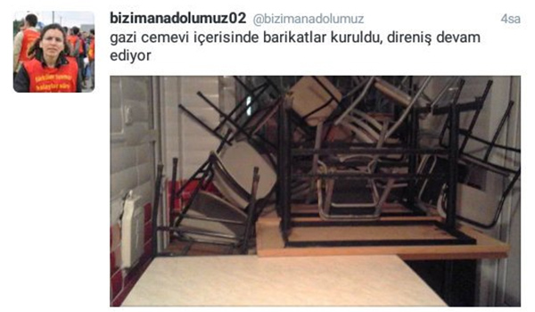 Bina içinden paylaşılan fotoğraflarda ise, Ci ve PKK’lı teröristlerin cemevinde Cizre ve Sur’daki gibi barikatlar kurduklarını ve güvenlik güçlerine buradan saldırdıklarını ortaya koyuyor.