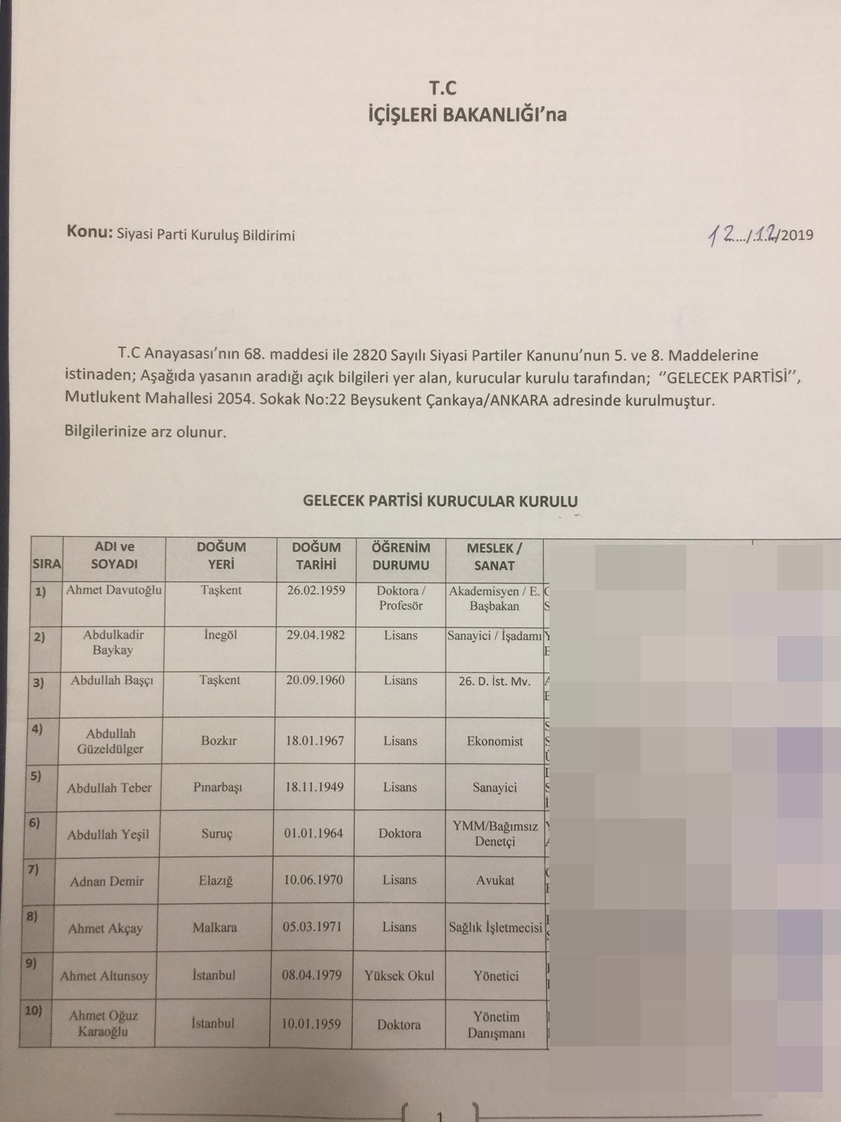 İşte Davutoğlu'nun partisinin Kurucular Kurulu'nda bulunan isimlerin tam listesi...