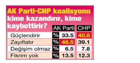CHP İLE KOALİSYON AK PARTİ'Yİ ZAYIFLATIR: % 46.5