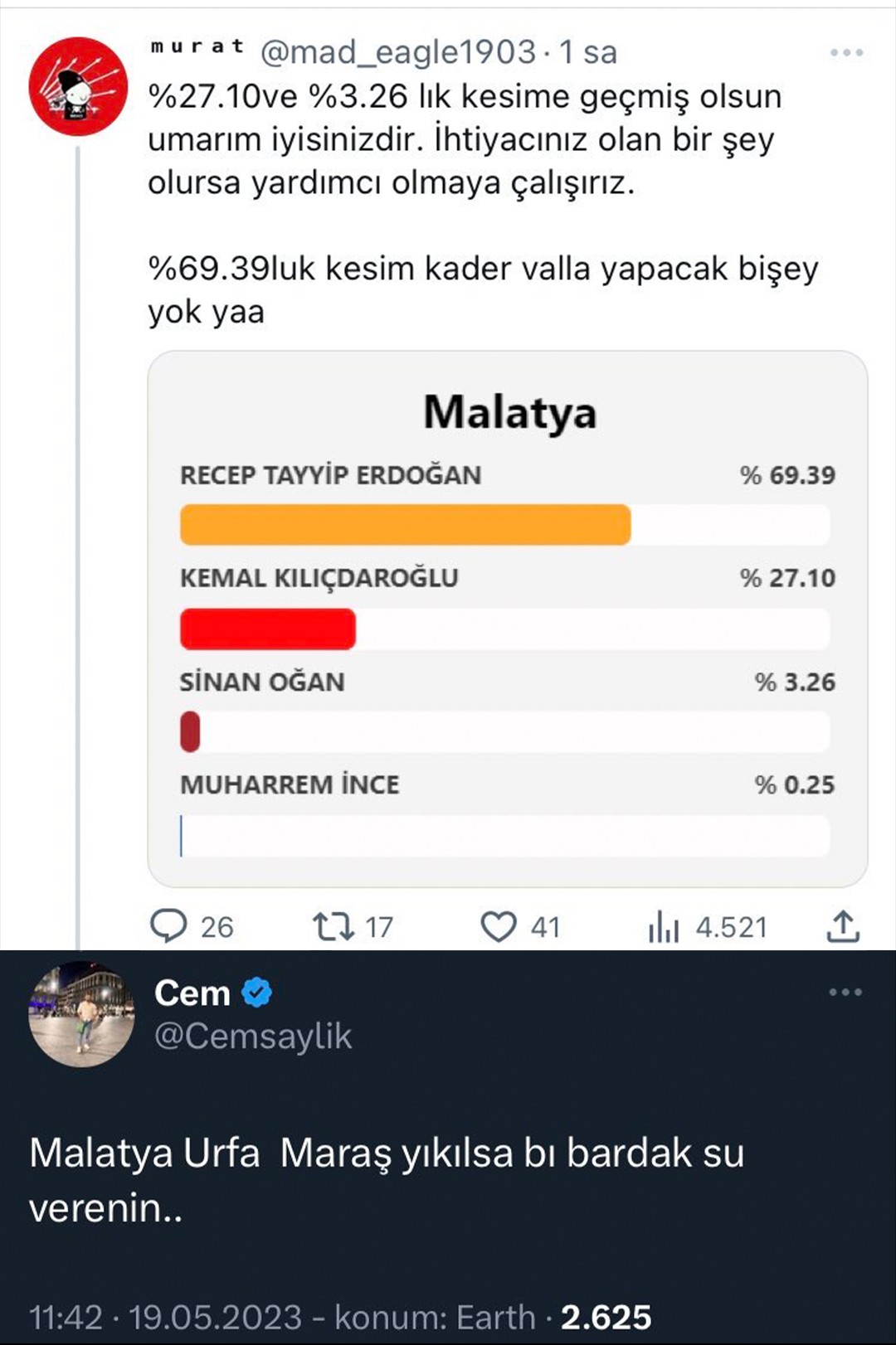 Seçimin ardından depremzedelere hakarette birbiri ile yarışan muhalefet, aynı çirkinliği bugün yaşanan 4.1 şiddetindeki Malatya depreminden sonra da sürdürdü.