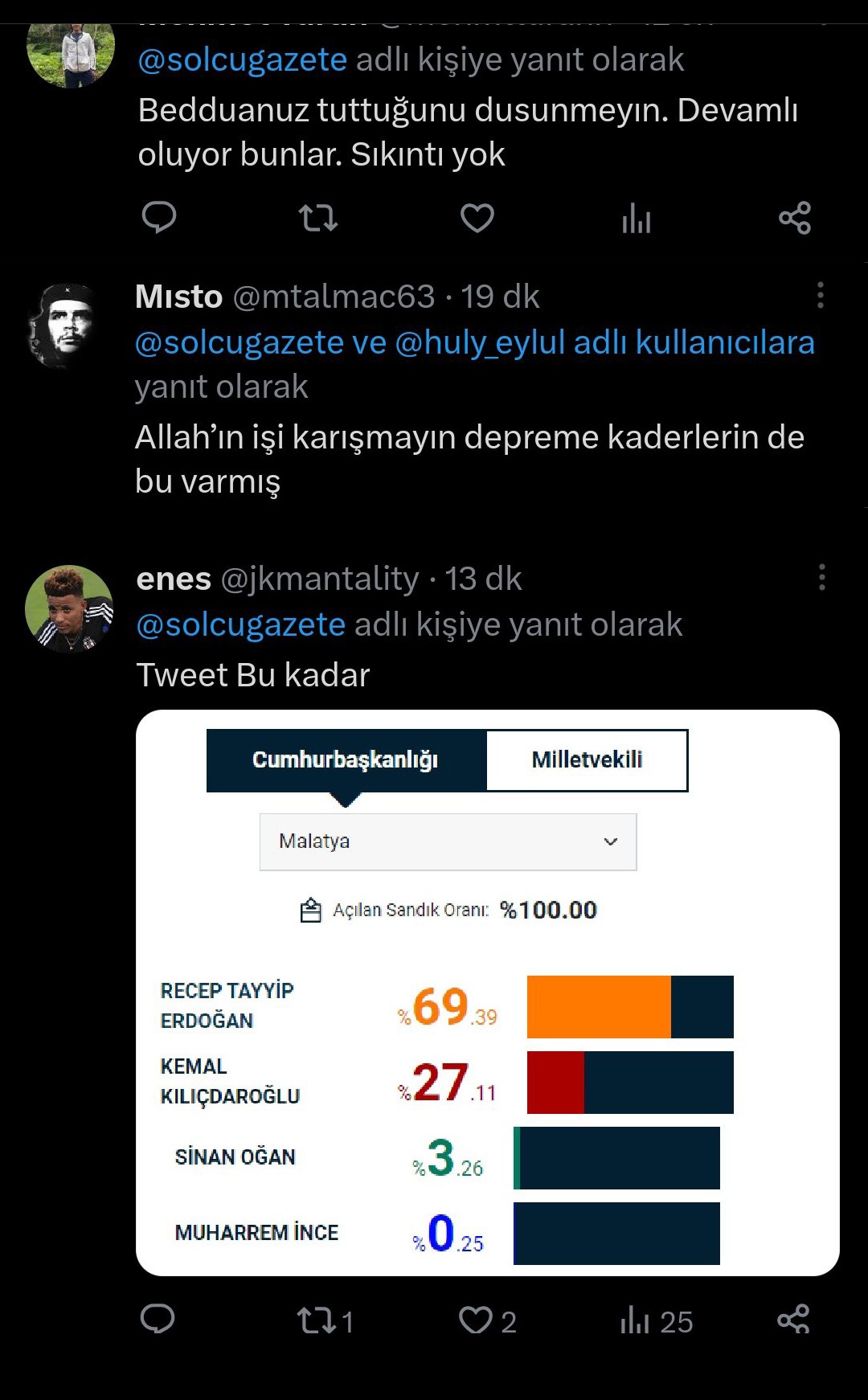 Malatya'da bugün meydana gelen 4.1 şiddetindeki depremden sonra, CHP seçmeni insanlık dışı yorumlarını sürdürdü.
