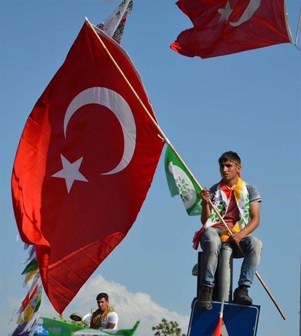Bugüne kadar HDP'nin düzenlediği doğu mitinglerinde Türk bayrağının açıldığı görülmemişti. Barajı aşmak için batı şehirlerinde oy arayışında olan HDP'nin seçime sayılı günler kala bu yola başvurduğu ifade ediliyor.