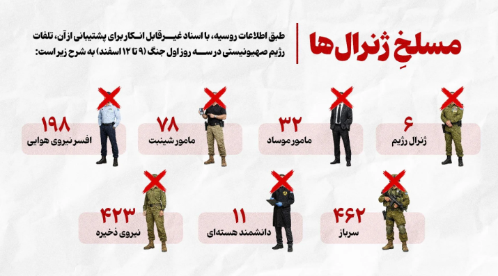 İran’ın Fars Haber Ajansı, Rus istihbaratına dayandırdığı raporla işgalci İsrail’in savaşın ilk üç günündeki ağır bilançosunu deşifre etti. Yüzlerce subay, istihbaratçı ve nükleer uzman etkisiz hale getirildi.