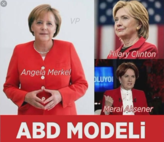 İkinci fotoğrafta görüyoruz ki, saç modellerinden giyimlerine kadar baktığımızda, bir ABD projesi olduğu ortada. Angela Merkel'i de, Hilary Clinton'u da, Meral Akşener'i de o çerçevede düşünebiliriz.