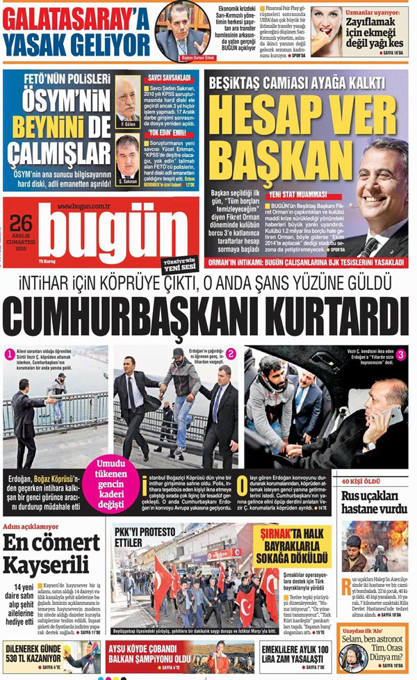 Gazetenin bugünkü ilk sayfası ise şöyle