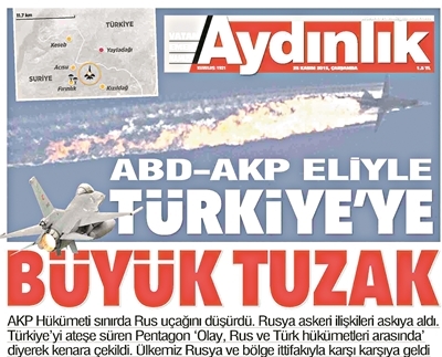 AK Parti nefreti yüzünden vatan-millet düşmanlığına savrularak, Gezi olaylarında DHKP-C, 17-25 Aralık darbe sürecinde FETÖ, MİT tır’ları olayında Esed, 7 Haziran seçimlerinde ise PKK destekçisi olan muhalif çevreler, Türkiye’nin sınır ihlali yapan Rus uçağını düşürmesinin ardından şimdi de Rus destekçiliğine soyundular. İktidar düşmanlığında sınır tanımayan malum medya, attığı manşetlerle adeta Rus uşaklığı yaptı.