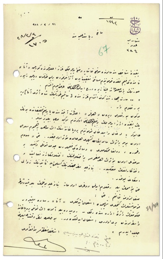 İstiklal Harbi'nin şiddetle devam ettiği günlerde "Karakol Cemiyeti"ne girerek kapanmasında rol oynayan, Kemalistlere ve Mustafa Kemal Paşa'ya yaklaşmayı başaran ancak sonunda Hint asıllı bir İngiliz casusu olduğu tespit edilen Mustafa Sagir hakkındaki 1921 tarihli belgenin "Osmanlıca" yazılmış orijinal hali de sitede sergileniyor.
