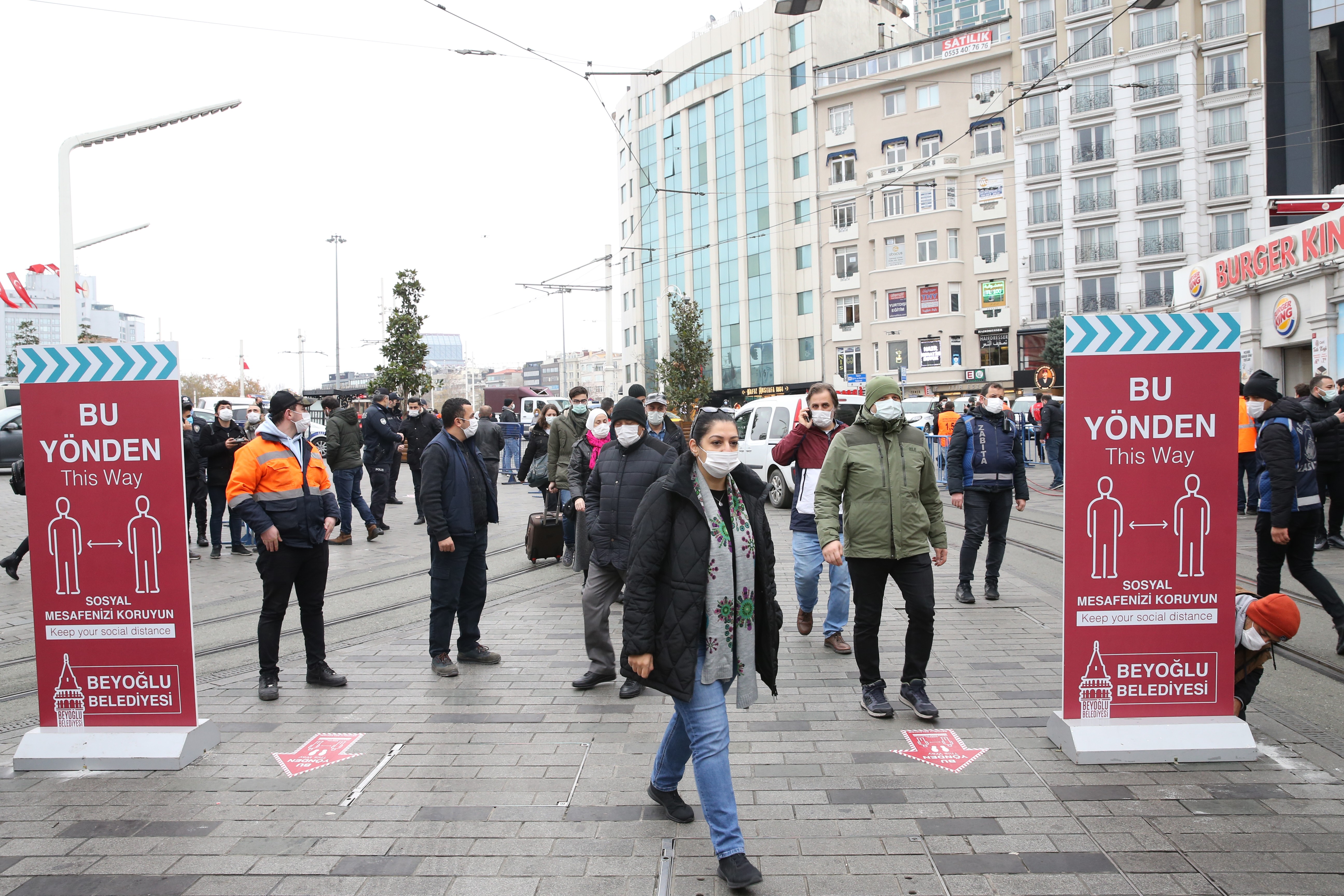 Öte yandan, kişilerin yürürken yüz yüze gelmelerini engellemek, bulaş riskini azaltmak için İstiklal Caddesi üzerinde tramvay yolu orta nokta alınarak herkes gidiş yönüne göre yolun sağından yürüyecek. Cadde üzerinde sosyal mesafenin azaldığı, toplanmaların olduğu yerlerde bulunanlar kolluk ve zabıta tarafından uyarılacak.