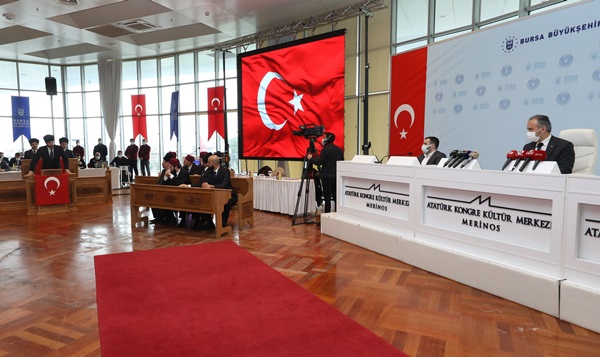 Bursa Büyükşehir Belediye Meclisi’nin Mart ayı oturumu, 100 yıl önce İstiklal Marşı’nın kabul edildiği, Türkiye Büyük Millet Meclisi’nin 12 Mart 1921 tarihli oturumunun anılması ile başladı. Şehir Tiyatrosu sanatçıları, İstiklal Yolu Mehmet Akif adlı oyundaki meclis oturumu sahnesiyle, Başkan Aktaş ve meclis üyelerine duygusal anlar yaşattı.